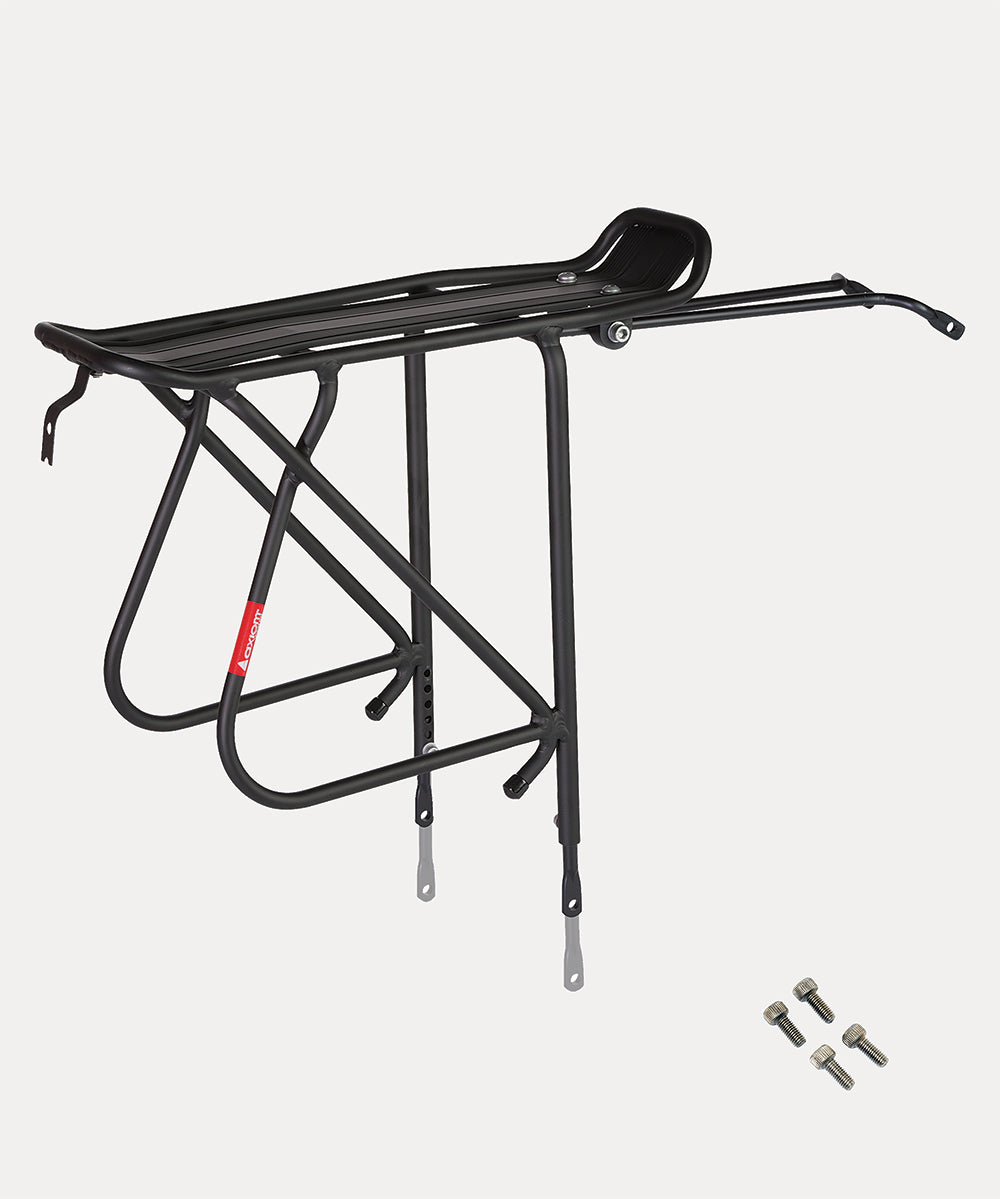 - Vertically adjustable stays maintain optimum load placement over rear wheel, while fitting a wide variety of wheel sizes and frame configurations.